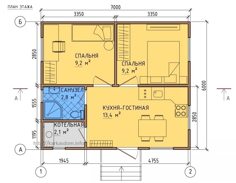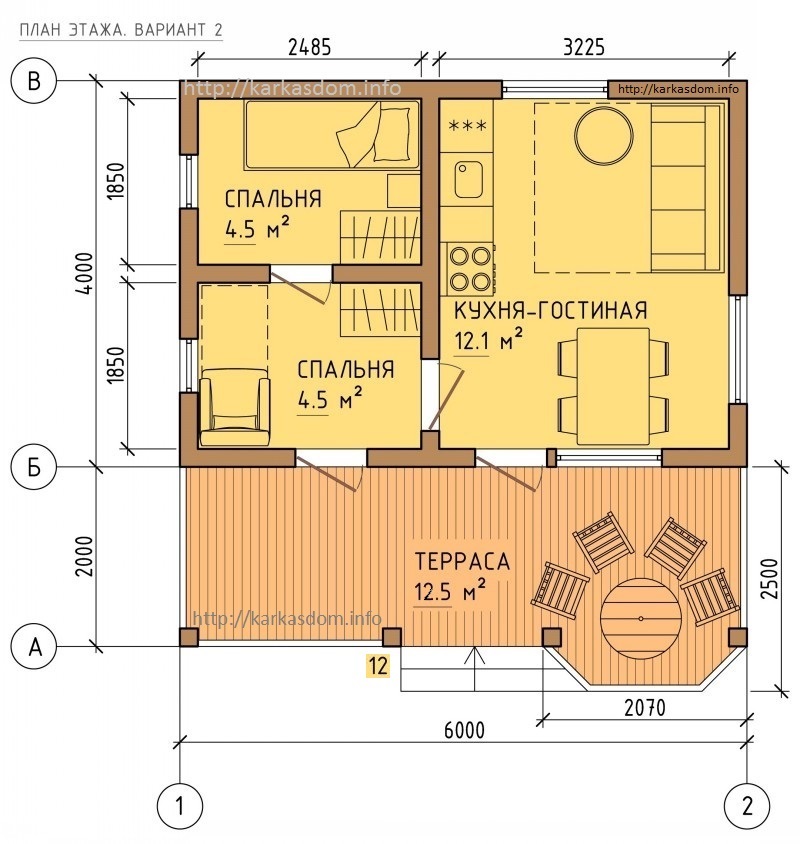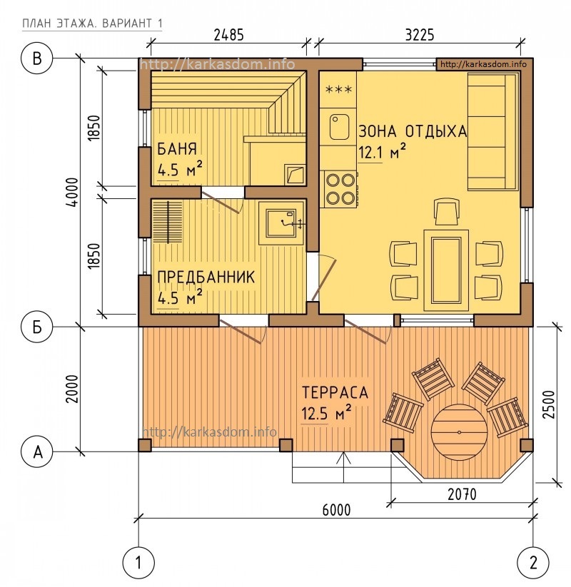 Вы здесь » Консультации и сопровождение каркасного строительства. » Проекты домов, бань, летних кухонь, подсобных поме » Варианты планировок малых каркасных домов.
